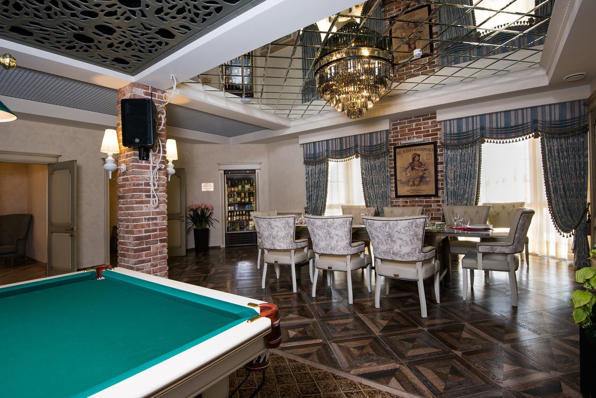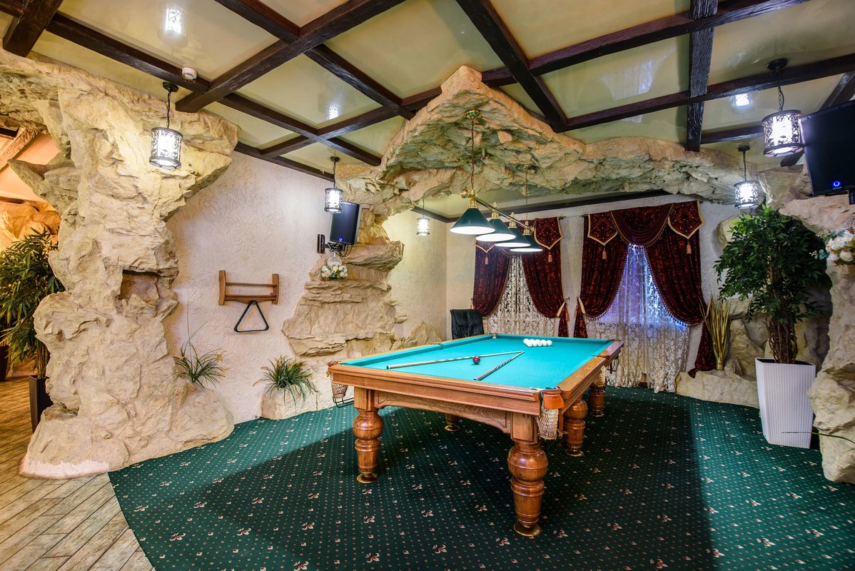 Не хочется в бассейн? Не беда! Вместо этого можно передохнуть в нашей комнате отдыха. Мы ставили своей целью создать здесь уютный, практичный интерьер из преимущественно натуральных, безопасных материалов, подобрать мебель, которая будет в равной степени удобной и эстетичной. Надеемся, что вы его оцените! Для поддержания атмосферы отдыха мы можем предложить вам бильярд, кальян, камин и караоке. Также у нас имеется бар, где вы можете приобрести блюда русской и японской кухонь, а при необходимости принести и собственную еду - мы не возражаем! Главное помните, что плотная трапеза незадолго перед посещением парной - это не самая удачная идея, по мнению терапевтов. А вот после парной - совсем другое дело!